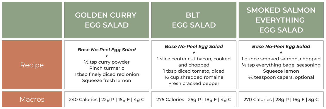 If you missed my original High Protein No Peel Egg Salad, you can find the full base recipe here: